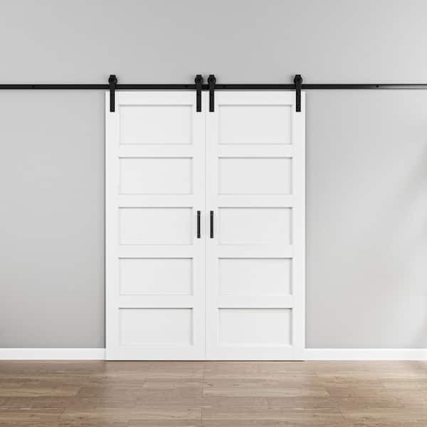 60 in. x 84 in. Paneled 5-Lites White MDF with PVC Finished Sliding Barn Door Slab with Hardware Kit and Soft Close