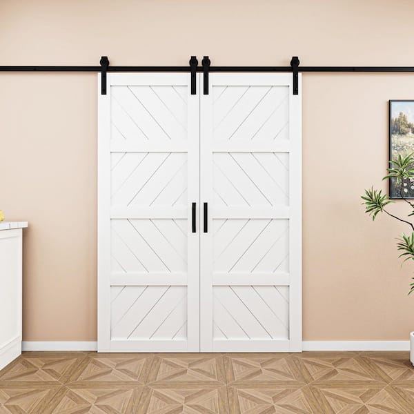 60 in. x 84 in.(Two 30 in. Slabs)White 4 Lite Wave Shape Prefinished Sliding Barn Door with Hardware Kit