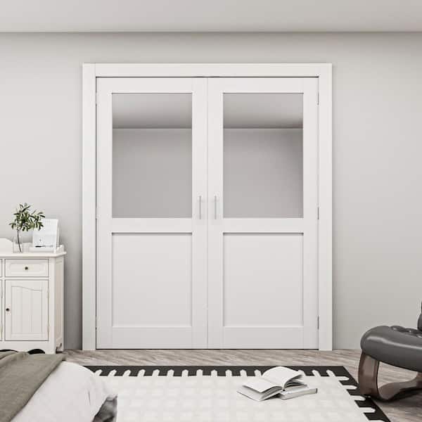 64 in. x 80 in. 1/2 Lite Mirrored Glass Solid Core Primed Wood French Door Without Jamb Bi-Fold Door with Ball Catch