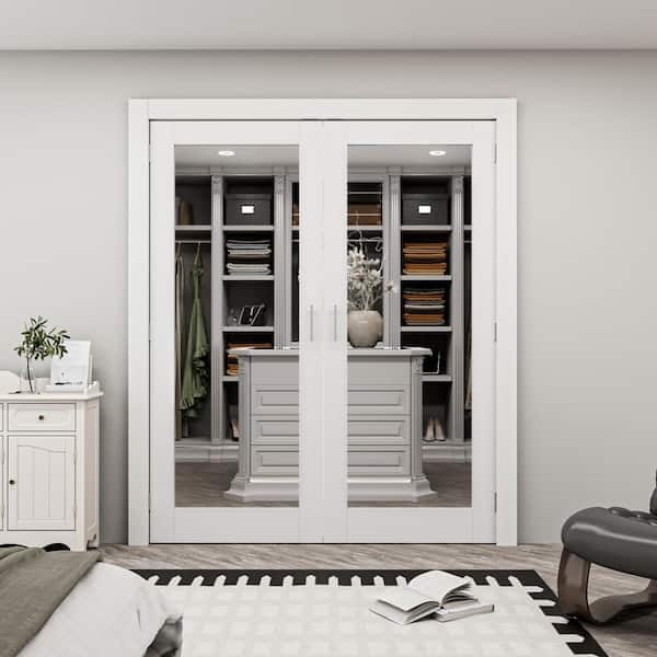64 in. x 80 in. 1-Lite Clear Glass White Solid Core Wood French Door without Jamb Interior Door Slab with Ball Catch