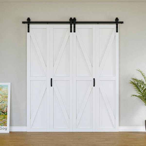 64 in. x 84 in. Paneled K Shape Solid Core White Finished Composite Bi-Fold Door Barn Door with Hardware Included
