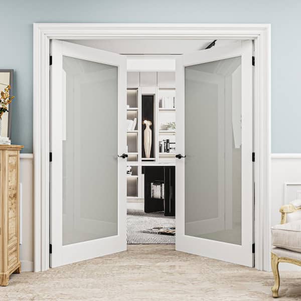 68 in. x 80 in. 1 Lite Frosted Glass Universal Primed Solid Core Glass Double Prehung French Door+ Quick Assemble Jamb