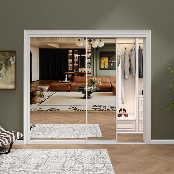 72 in. W. x 80 in. 1-Lite Mirrored Glass Aluminum Frame Closet Sliding Door with Hardware Kit