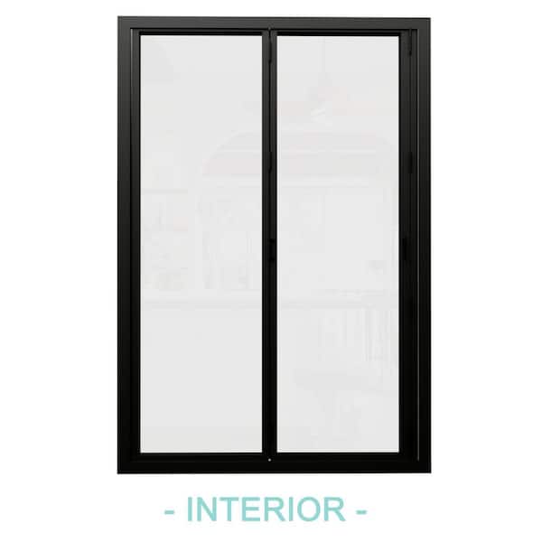 72 in. x 80 in. Left Swing/OutSwing Double Tempered Glass Black Aluminum Folding Patio Door (2-Folding)
