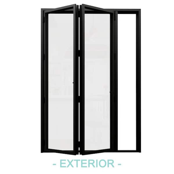 72 in. x 80 in. Left Swing/Outswing Double Tempered Glass Black Aluminum Folding Patio Door (2-Folding)