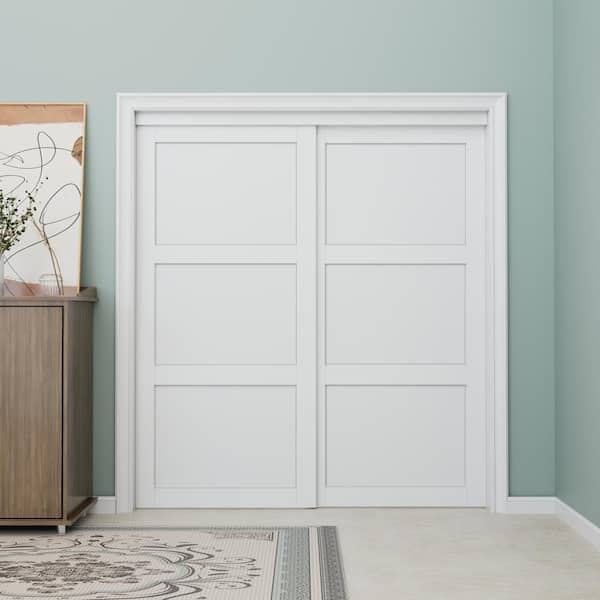 72 in. x 80 in. Paneled 3-Lite White Primed MDF Muti-Design Sliding Door with Hardware