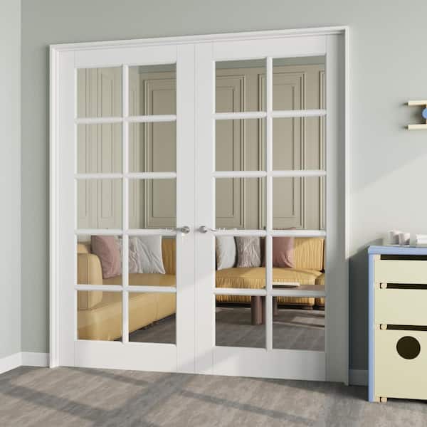 72 in. x 80 in. Universal Handed 10-Lite Clear Glass White Solid Core MDF French Door with Quick Assemble Jamb