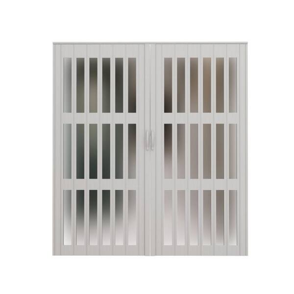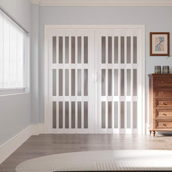 72 in. x 80 in. White Matte Double 3 Lite Frosted Acrylic and Vinyl Accordion Door with Hardware