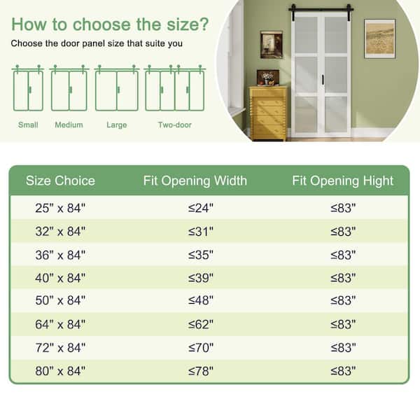 72 in. x 84 in. 3-Lite Tempered Frosted Glass White Finished Composite MDF Bi-Fold Sliding Barn Door with Hardware Kit