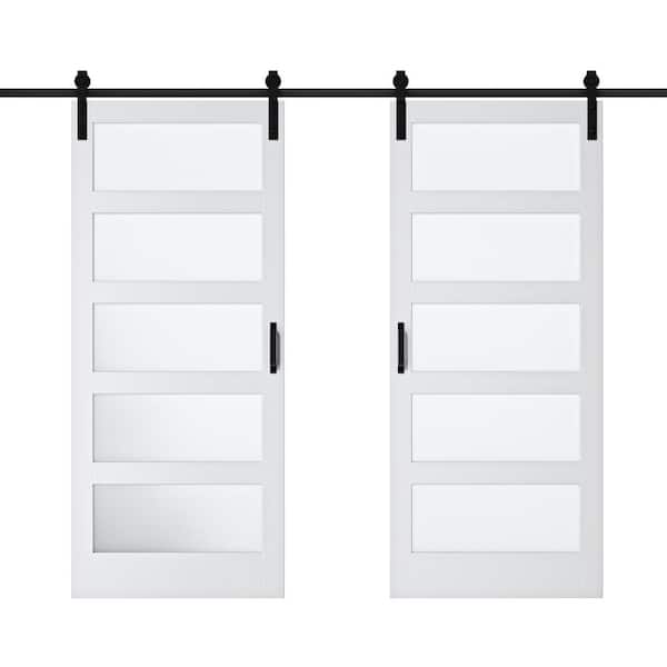 72 in. x 84 in. 5 Equal Lites with Frosted Glass White MDF Interior Sliding Barn Door with Hardware Kit