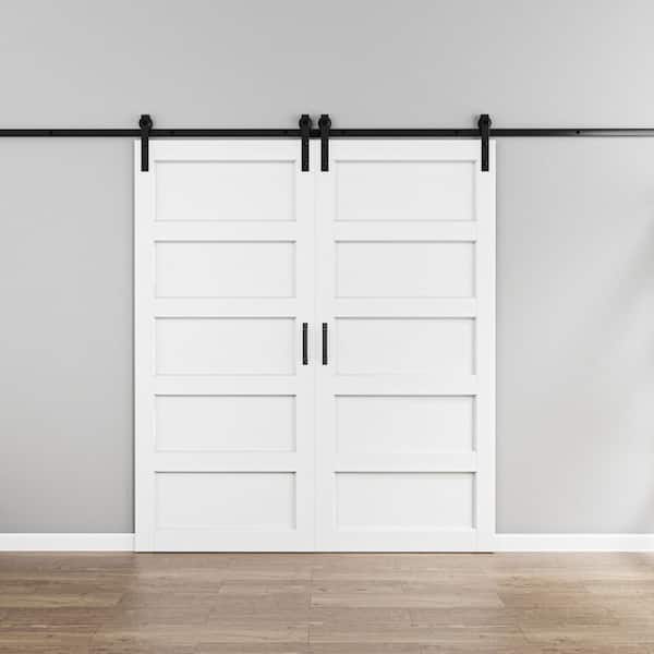 72 in. x 84 in. Paneled 5-Lites White MDF with PVC Finished Sliding Barn Door Slab with Hardware Kit and Soft Close