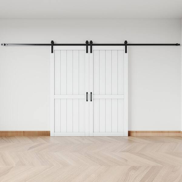 72 in. x 96 in. White Paneled H Style White Primed MDF Sliding Barn Door with Hardware Kit Without Soft Close