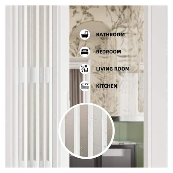76 in. x 78.75 in. White Dual Layer 1 Lite Frosted Acrylic and Vinyl Accordion Door with Hardware