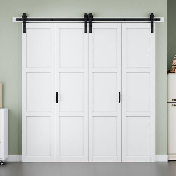 80 in. x 84 in. Easy Install 3-Panel White Primed Solid Core MDF Composite Bi-Fold Sliding Barn Door with Hardware Kit