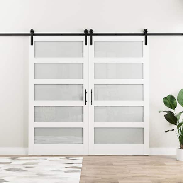 84 in. x 84 in. 5-Lites with Frosted Glass White MDF Sliding Barn Door with Hardware Kit (Soft Close Include)