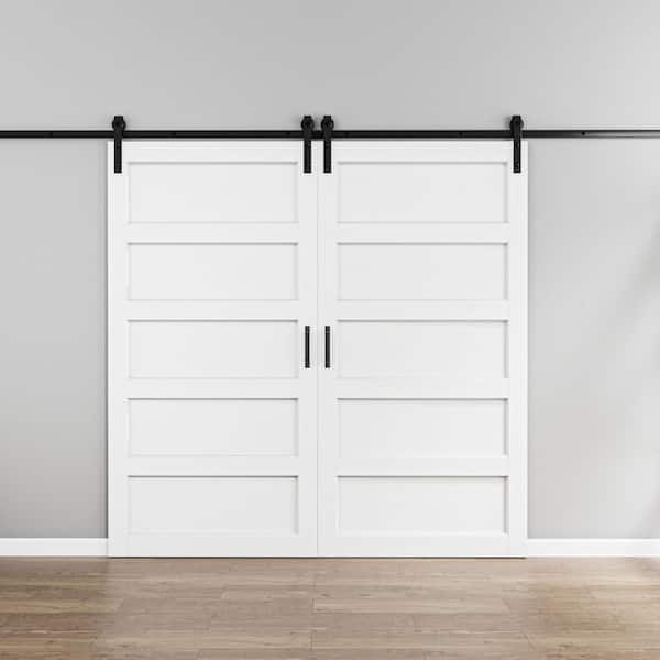 84 in. x 84 in. Paneled 5-Lites White MDF with PVC Finished Sliding Barn Door Slab with Hardware Kit and Soft Close