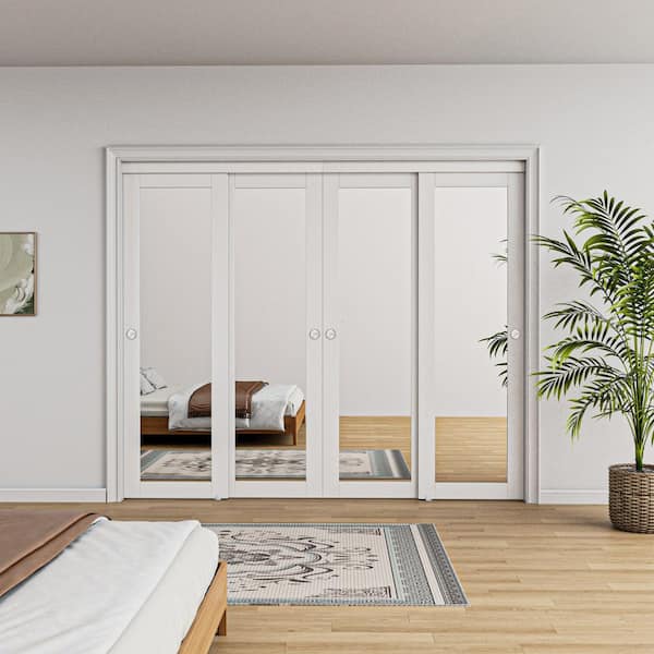 96 in. x 80 in. 1 Lite Mirror Glass White Finished MDF Interior Closet Sliding Door with Hardware and Handles