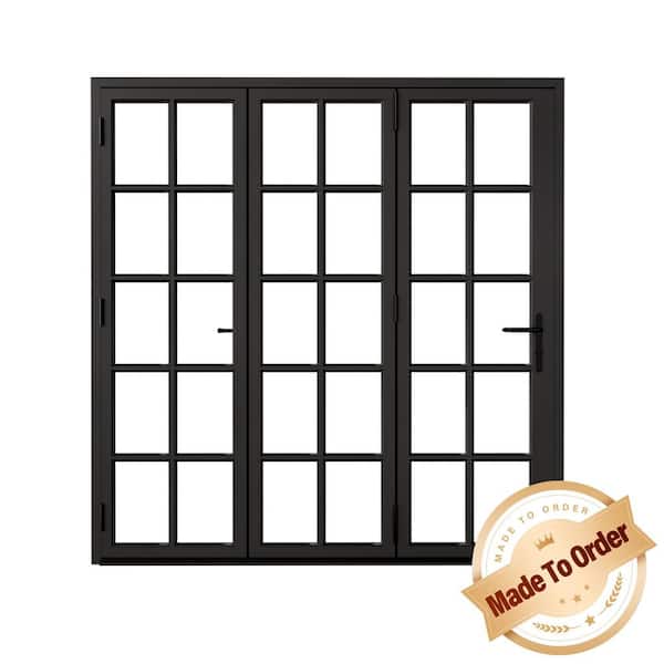 96 in. x 80 in. Left Swing/Outswing Double Tempered Glass Black Aluminum Folding Patio Door