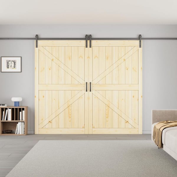 96 in. x 84 in. K-Shape Solid Core Pine Wood Unfinished Sliding Barn Door Slab with Hardware Kit and Soft Close