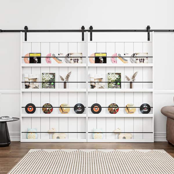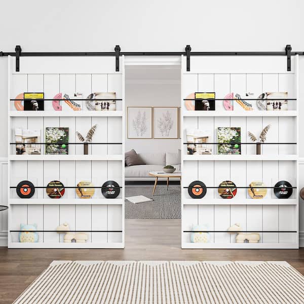 96 in. x 84 in. White Primed Composite MDF Shelves Sliding Barn Door with Hardware Kit