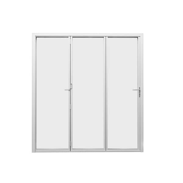 96 in. x 96 in. Left Center Opening/Outswing Double Tempered Glass White Aluminum Folding Patio Door