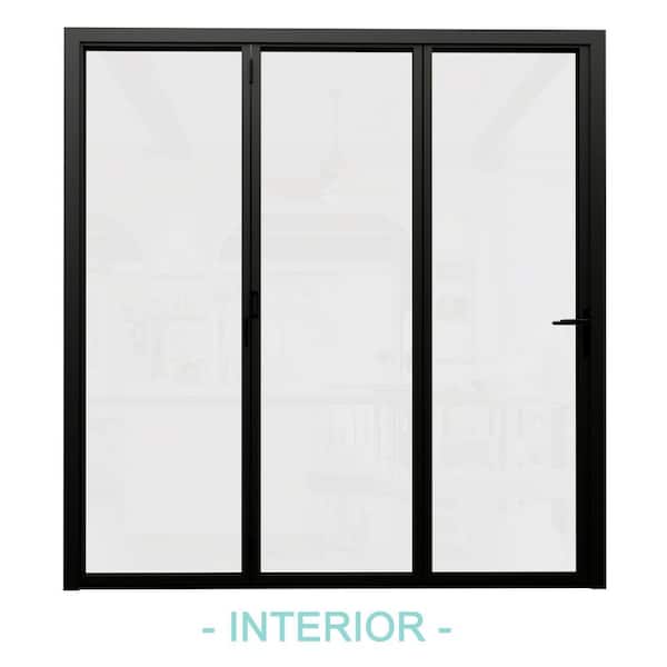 96 in. x 96 in. Left Swing/Outswing Double Tempered Glass Black Aluminum Folding Patio Door (3-folding)