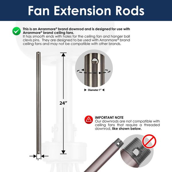 24 in. Brushed Nickel Steel Extension Downrod