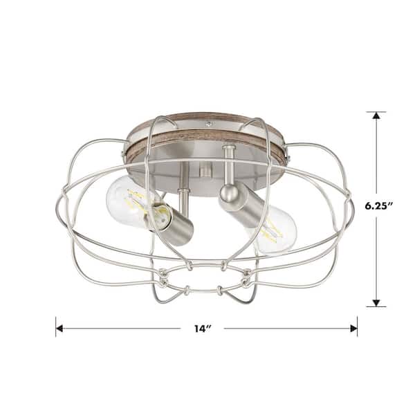 Lyam 14 in. 2-Light Brushed Nickel Flush Mount with Cage Style Shade and No Bulbs Included