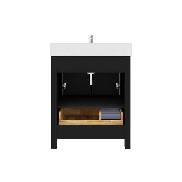 Boulder 30 in. W x 22 in. D Bath Vanity in Espresso with Engineered Stone Top with White Sink and Drawer Organizer
