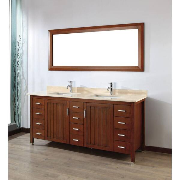 Jackie 72 in. Vanity in Classic Cherry with Marble Vanity Top in Beige and Mirror