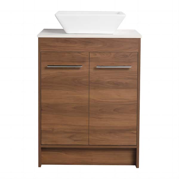 23.6 in. W x 18.9 in. D x 35.8 in. H Brown Freestanding Bath Vanity with White Ceramic Vanity Top