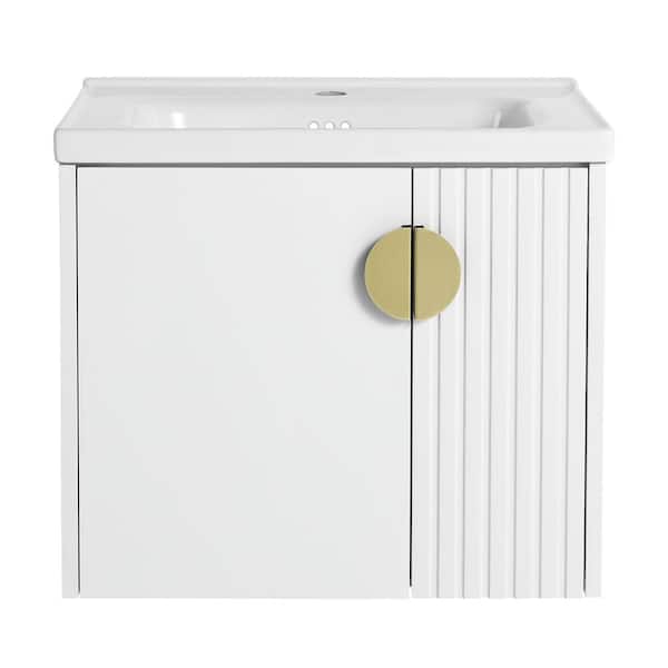 23.8 in. W x 18.5 in. D x 20.7 in. H Wall-Mounted Bath Vanity in White with White Ceramic Vanity Top