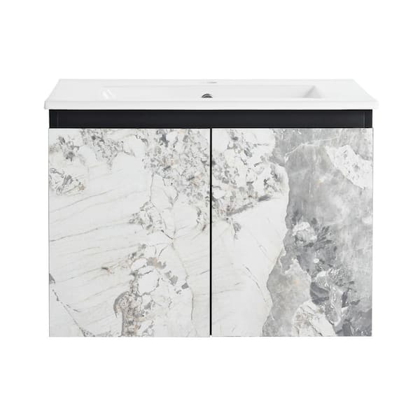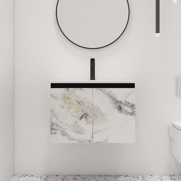 24 in. W x 18.3 in. D x 17.3 in. H Wall Mounted Bath Vanity in Black with White Ceramic Vanity Top