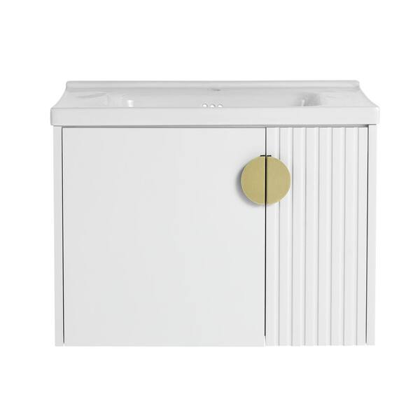 27.8 in. W x 18.5 in. D x 20.7 in. H Wall-Mounted Bath Vanity in White with White Ceramic Vanity Top