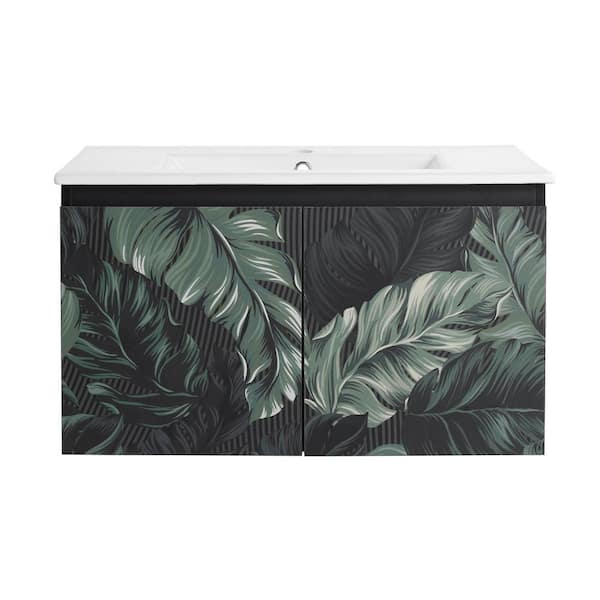 30 in. W x 18.3 in. D x 17.3 in. H Wall Mounted Bath Vanity in Black with White Ceramic Vanity Top
