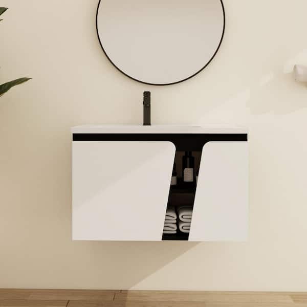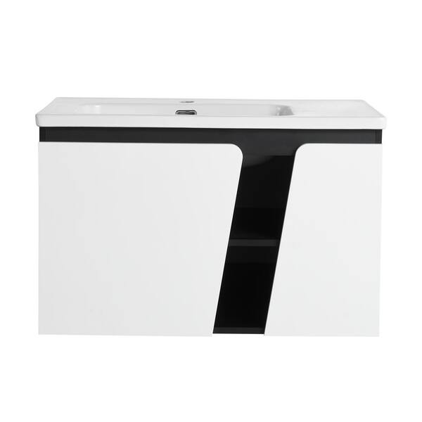 31.7 in. W x 19.9 in. D x 20.1 in. H Wall-Mounted Single Bathroom Vanity in Black with White Ceramic Top