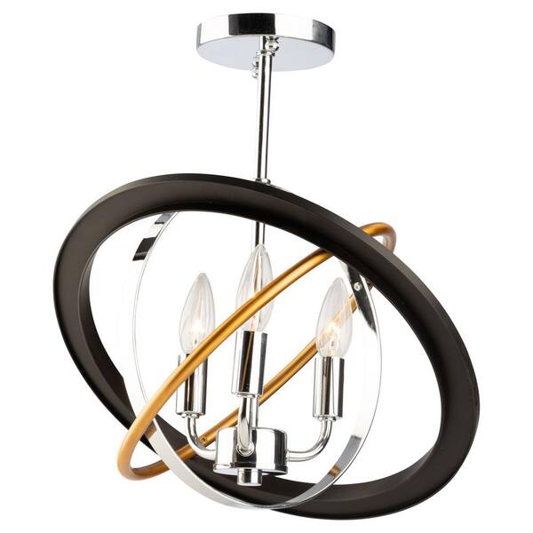 Cosmic 3-Light Dark Bronze, Chrome, Satin Brass Semi-Flush Mount