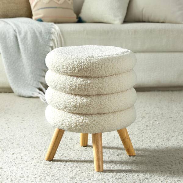 Cesilio 15.7 in. Wide Ivory Sherpa Ottoman with Wood Legs
