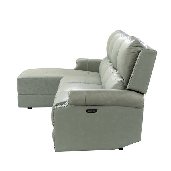 Delos 4-Seater Leather Power L Shaped Reclining Sectional Sofa with Nailhead Trim in Sage