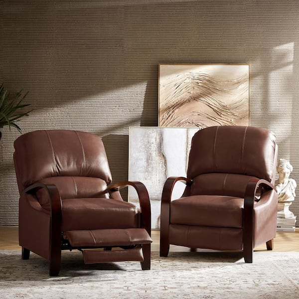 Ernesto Brown Genuine Leather with The Wooden Armrest Recliner (Set of 2)