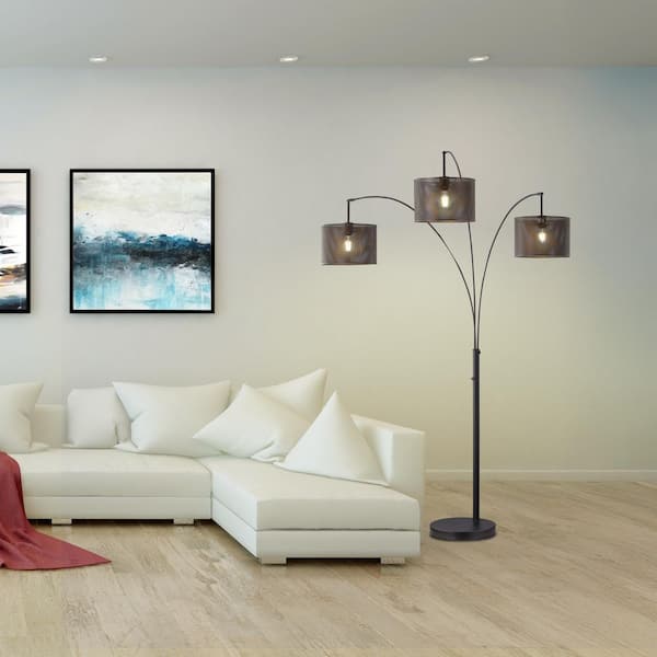 Lumiere II 83 in. H, Dark Bronze LED Arched Standard Floor Lamp with Dimmer and Double Shade (Linen and Metal)