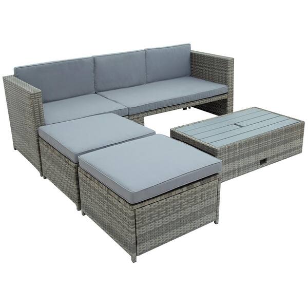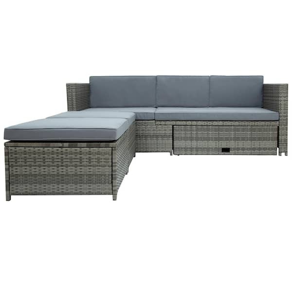 27.6 in. W Square Arm 4-Piece Straight Fabric Sectional Sofa in Gray