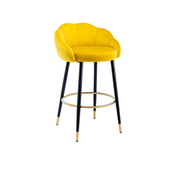 37.4 in. Yellow Low Back Metal Frame Bar Stool with Velvet Seat (Set of 2)