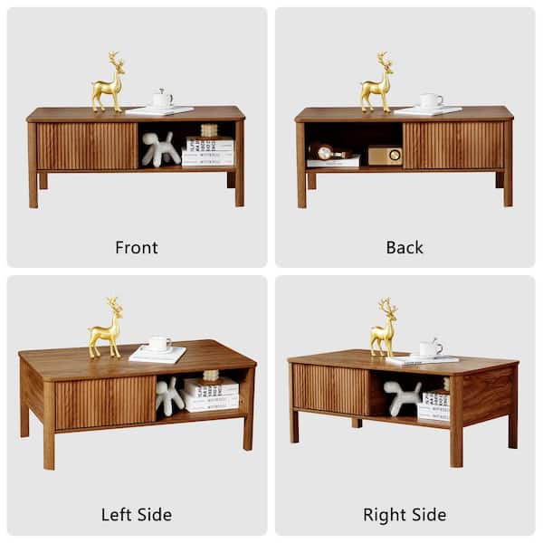 39 in. Walnut Rectangle Wood Coffee Table With Storage Shelf(21. 65in. D x 39. 37in. W x 16. 53in. H)