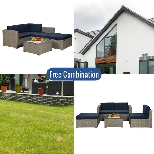 5-Piece Glass Top Gray Wicker Living Room Suites