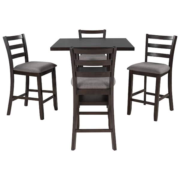 5-Piece Wooden Top Espresso Counter Height Dining Table Set 4 Padded Chairs