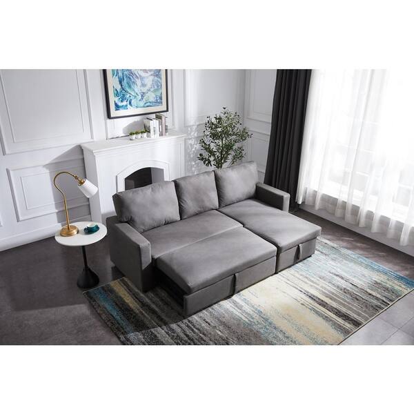 52 in. W SquareArm 1-Piece L Shaped Polyester Sectional Sofa in Gray