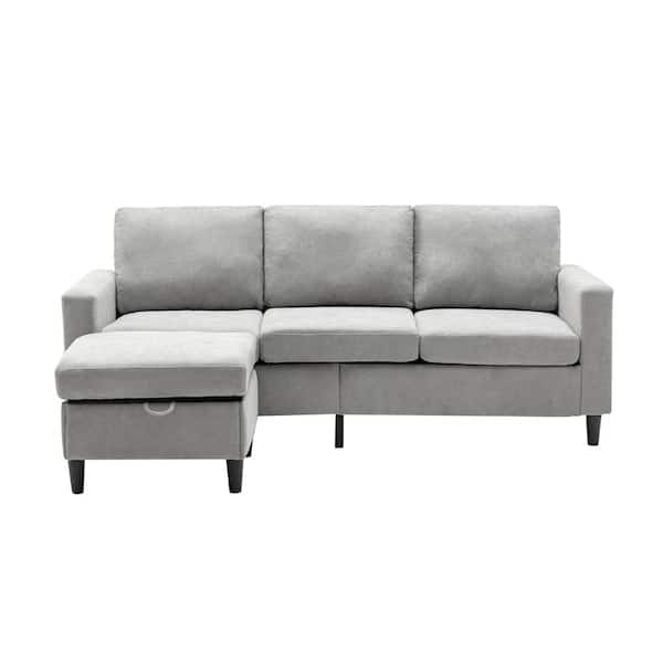 77.9 in. W Square Arms 3-Piece L-Shaped Polyester Modern Sectional Sofa in Gray