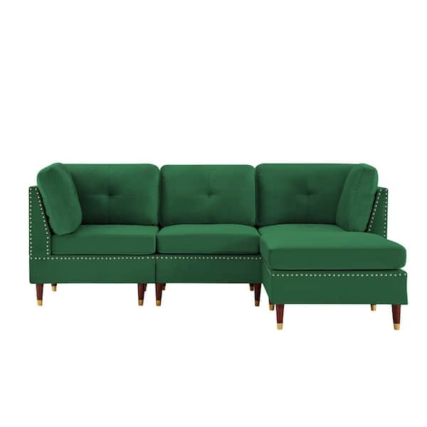 88.58 in. Square Arm 2-Piece L-Shaped Velvet Modern Sectional Sofa in Green with Ottoman