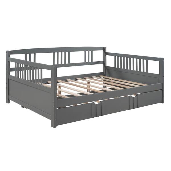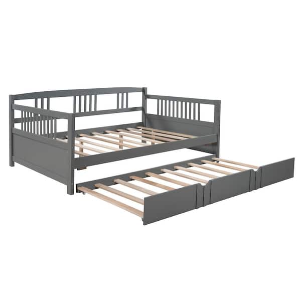 Gray Full Size Daybed Wood Bed with Twin Size Trundle
